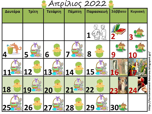 Ακολουθεί το ημερολόγιο του Απρίλη του 2022